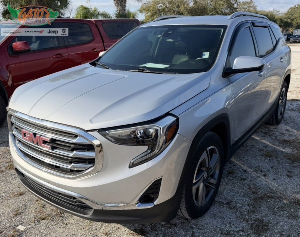 Come see this 2020 GMC Terrain SLT. Its Automatic transmission and Turbocharged Gas/E15 I4 1.5L/92 engine will keep you going. This GMC Terrain features the following options: TRANSMISSION, 9-SPEED AUTOMATIC 9T45, ELECTRONICALLY-CONTROLLED WITH OVERDRIVE (STD), TIRES, P225/60R18 ALL-SEASON BLACKWALL (STD), TIRE, SPARE, T135/70R16 BLACKWALL (STD), SLT PREFERRED EQUIPMENT GROUP Includes Standard Equipment, SEATS, FRONT BUCKET (STD), QUICKSILVER METALLIC, LICENSE PLATE FRONT MOUNTING PACKAGE, JET BLACK, PERFORATED LEATHER-APPOINTED SEAT TRIM, ENGINE, 1.5L TURBO DOHC 4-CYLINDER, SIDI, VVT (170 hp [127.0 kW] @ 5600 rpm, 203 lb-ft of torque [275.0 N-m] @ 2000 - 4000 rpm) (STD), and AXLE, 3.47 FINAL DRIVE RATIO.