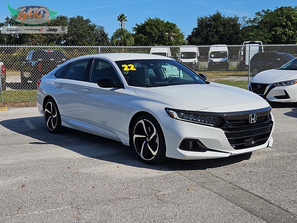 Come see this 2022 Honda Accord Sedan Sport. Its Variable transmission and Intercooled Turbo Regular Unleaded I-4 1.5 L/91 engine will keep you going. This Honda Accord Sedan has the following options: Wireless Phone Connectivity, Wheels: 19" Machine-Finished Alloy w/Black Inserts, Vehicle Stability Assist (VSA) Electronic Stability Control (ESC), Valet Function, Trunk Rear Cargo Access, Trip Computer, Transmission: Continuously Variable -inc: sport mode and paddle shifters, Transmission w/Driver Selectable Mode, Tires: 235/40R19 96V AS, and Strut Front Suspension w/Coil Springs.
