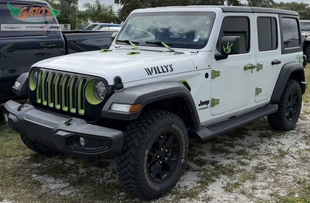 Check out this 2021 Jeep Wrangler Unlimited Willys. Its Automatic transmission and Intercooled Turbo Premium Unleaded I-4 2.0 L/122 engine will keep you going. This Jeep Wrangler features the following options: TRANSMISSION: 8-SPEED AUTOMATIC (850RE), TRAILER TOW & HD ELECTRICAL GROUP -inc: Class II Receiver Hitch, 700 Amp Maintenance Free Battery, 7 & 4 Pin Wiring Harness, 240 Amp Alternator, Auxiliary Switches, TECHNOLOGY GROUP -inc: Google Android Auto, Cluster 7.0" TFT Color Display, SiriusXM Satellite Radio, SiriusXM Radio Service, For More Info, Call 800-643-2112, USB Host Flip, Integrated Center Stack Radio, 7.0" Touchscreen Display, Air Conditioning w/Auto Temp Control, Radio: Uconnect 4 w/7" Display, Apple CarPlay, Air Filtering, GPS Antenna Input, SIRIUSXM SATELLITE RADIO -inc: SiriusXM Radio Service, For More Info, Call 800-643-2112, SAFETY GROUP -inc: ParkSense Rear Park Assist System, Blind Spot & Cross Path Detection, LED Taillamps, Injection Molded Black Rear Bumper, RADIO: UCONNECT 4C NAV W/8.4" DISPLAY, QUICK ORDER PACKAGE 22W WILLYS -inc: Engine: 2.0L I4 DOHC DI Turbo w/ESS, Transmission: 8-Speed Automatic (850RE), Willys, Mold In Color Bumper w/Gloss Black, Speed Sensitive Power Locks, Automatic Headlamps, Leather Wrapped Steering Wheel, Black Trail Rated Badge, 4-Wheel Drive Swing Gate Decal, Black Grille, MOPAR All-Weather Floor Mats, Willys Hood Decal, Rock Protection Sill Rails, Front 1-Touch Down Power Windows, Power Heated Mirrors, Wrangler Decal, Matte Black Jeep Badge, Security Alarm, Remote Keyless Entry, Sun Visors w/Illuminated Vanity Mirrors, Front LED Fog Lamps, LED Premium Reflector Headlamps, MANUFACTURER'S STATEMENT OF ORIGIN, GVWR: 5,400 LBS (STD), and ENGINE: 2.0L I4 DOHC DI TURBO W/ESS.
