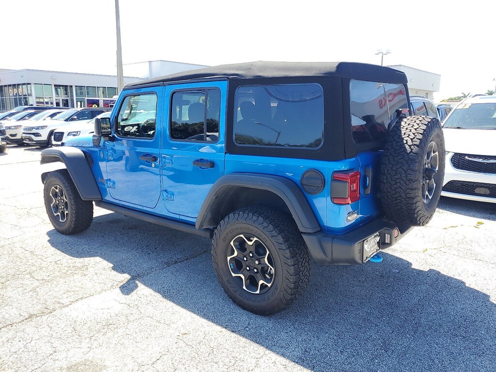 Come see this 2022 Jeep Wrangler 4xe Unlimited Rubicon. Its Automatic transmission and Intercooled Turbo Gas/Electric I-4 2.0 L/122 engine will keep you going. This Jeep Wrangler 4xe has the following options: TRANSMISSION: 8-SPEED AUTO 8P75PH PHEV (STD), TIRES: LT285/70R17C BSW OFF-ROAD (STD), SAFETY GROUP -inc: Blind Spot & Cross Path Detection, ParkSense Rear Park Assist System, QUICK ORDER PACKAGE 29V -inc: Engine: 2.0L I4 DOHC DI Turbo PHEV, Transmission: 8-Speed Auto 8P75PH PHEV, PREMIUM BLACK SUNRIDER SOFT TOP, MOPAR ALL-WEATHER FLOOR MATS, HYDRO BLUE PEARLCOAT, ENGINE: 2.0L I4 DOHC DI TURBO PHEV (STD), CORNING GORILLA GLASS, and BLACK, PREMIUM CLOTH LOW-BACK BUCKET SEATS.