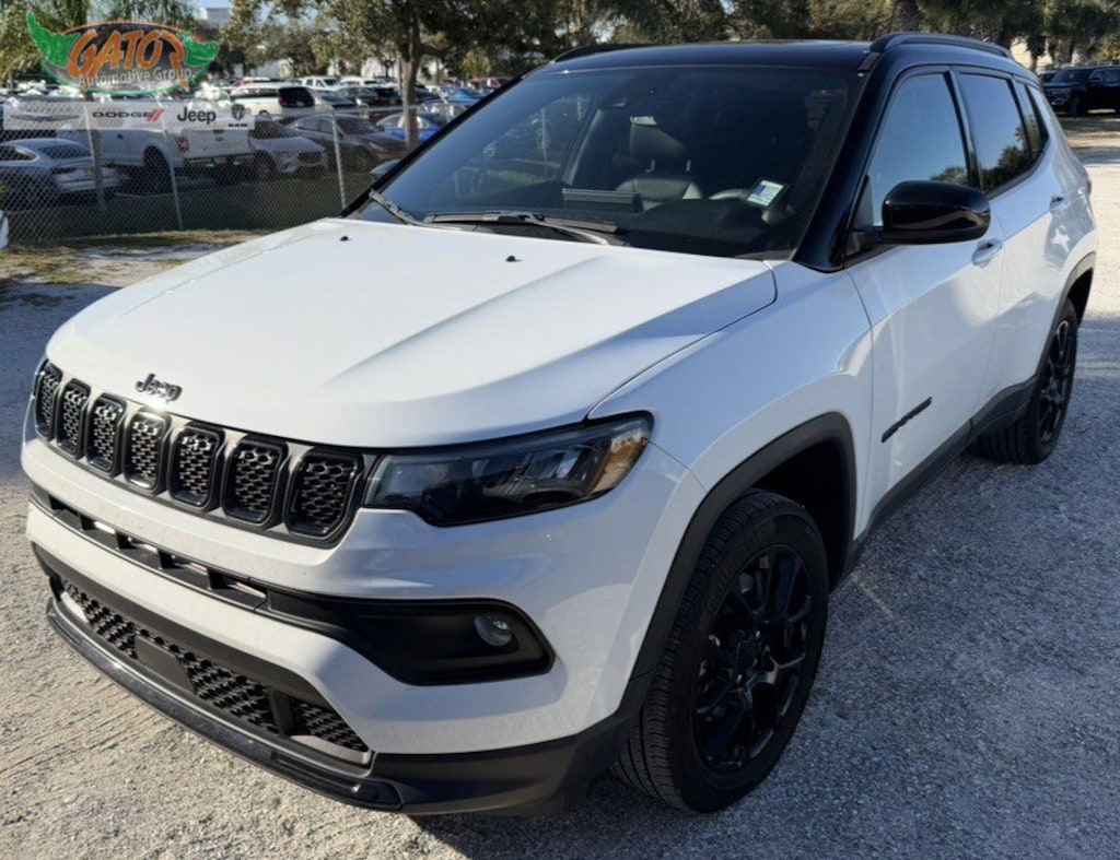 Check out this 2024 Jeep Compass Latitude. Its Automatic transmission and Intercooled Turbo Regular Unleaded I-4 2.0 L/122 engine will keep you going. This Jeep Compass features the following options: WHEELS: 18" X 7" GLOSS BLACK PAINTED ALUMINUM, TU-TONE PAINT GROUP, TRANSMISSION: 8-SPEED AUTOMATIC 8F30 (STD), TIRES: 225/55R18 BSW AS, SUN AND SOUND GROUP -inc: Premium Alpine Speaker System, Power Front/Fixed Rear Full Sunroof, ENGINE: 2.0L I4 DOHC DI TURBO W/ESS (STD), BRIGHT WHITE CLEARCOAT, BLACK, PREMIUM CLOTH/VINYL BUCKET SEATS, BLACK CLEARCOAT, and ALTITUDE SPECIAL EDITION -inc: Gloss Black Surround/Neutral Gray Rings, Tu-Tone Paint Group, Light Tungsten Interior Accent Stitching, Black Day Light Opening Moldings, Wheels: 18" x 7" Gloss Black Painted Aluminum, Tires: 225/55R18 BSW AS, Neutral Gray Exterior Badging, Piano Black Interior Accents, Black Roof, Sliding Sun Visors w/Illuminated Mirrors.