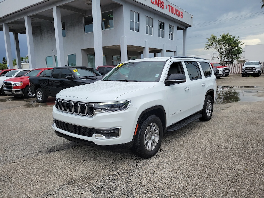 Check out this 2024 Jeep Wagoneer 4DR 2WD. Its Automatic transmission and Twin Turbo Regular Unleaded I-6 3.0 L/183 engine will keep you going. This Jeep Wagoneer has the following options: WHEELS: 18" X 8.0" ALUMINUM BASE FINISH (STD), TRANSMISSION: 8-SPEED AUTOMATIC (8HP75) (STD), TIRES: 275/65R18 BSW ALL SEASON (STD), SEA SALT/BLACK, LEATHER TRIMMED BUCKET SEATS, MOPAR INTERIOR PROTECTION PACKAGE -inc: All-Season Floor Mats, Cargo Tray, ENGINE: 3.0L I6 HURRICANE SO TWIN TURBO ESS (STD), BRIGHT WHITE CLEARCOAT, Wheels: 18" x 8.0" Aluminum Base Finish, Wagoneer Connect Emergency Sos Capability, and Voice Activated Dual Zone Front And Rear Automatic Air Conditioning.