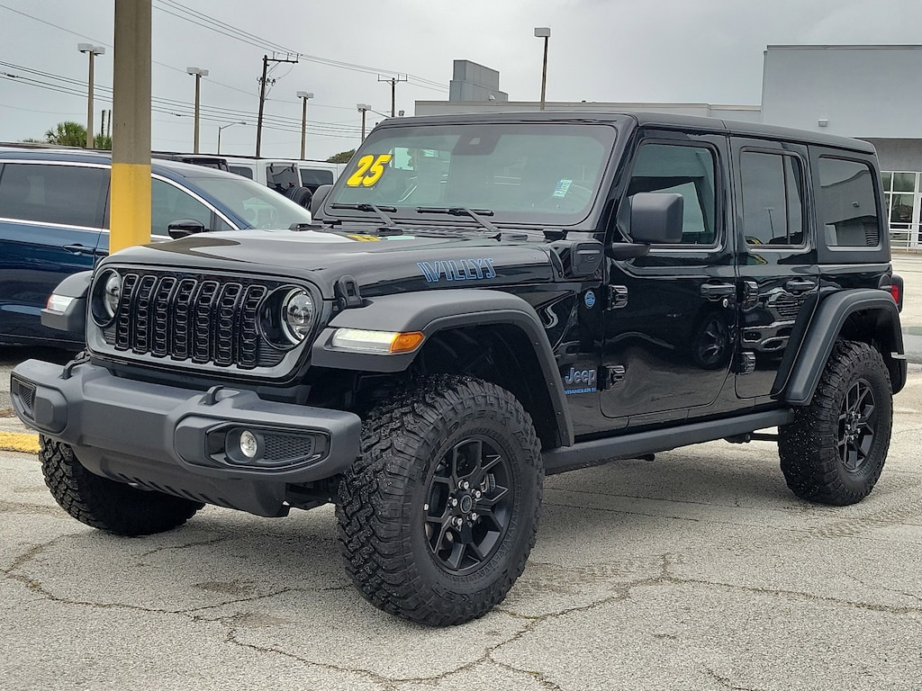 Come see this 2025 Jeep Wrangler 4xe Willys. Its Automatic transmission and Intercooled Turbo Gas/Electric I-4 2.0 L/122 engine will keep you going. This Jeep Wrangler 4xe comes equipped with these options: TRANSMISSION: 8-SPEED AUTO 8P75PH PHEV (STD), QUICK ORDER PACKAGE 29W WILLYS 4XE -inc: Engine: 2.0L I4 DOHC DI Turbo PHEV, Transmission: 8-Speed Auto 8P75PH PHEV, Class II Receiver Hitch, 7 & 4 Pin Wiring Harness, Willys 4xe Hood Decal, Conventional Differential Front Axle, Off-Road Plus Mode, 4-Wheel Drive Swing Gate Decal, Black Grille, Rock Protection Sill Rails, 97 MPH Vehicle Max Speed Calibration, Front LED Fog Lamps, LED Premium Reflector Headlamps, Auxiliary Switches, E-Locker Rear Axle, Molded in Color Rubicon Highline Flare, FRONT LICENSE PLATE BRACKET, ENGINE: 2.0L I4 DOHC DI TURBO PHEV (STD), CONVENIENCE GROUP -inc: Emergency/Assistance Call, 2-Door Passive Entry, Front Door Locks, Remote Start System, Universal Garage Door Opener, Heated Front Seats, Air Conditioning w/Auto Temp Control, Heated Steering Wheel, Air Filtering, BLACK, CLOTH LOW-BACK BUCKET SEATS, BLACK CLEARCOAT, BLACK 3-PIECE HARD TOP -inc: Freedom Panel Storage Bag, Rear Window Defroster, Rear Window Wiper/Washer, Wireless Phone Connectivity, and Window Grid Antenna.