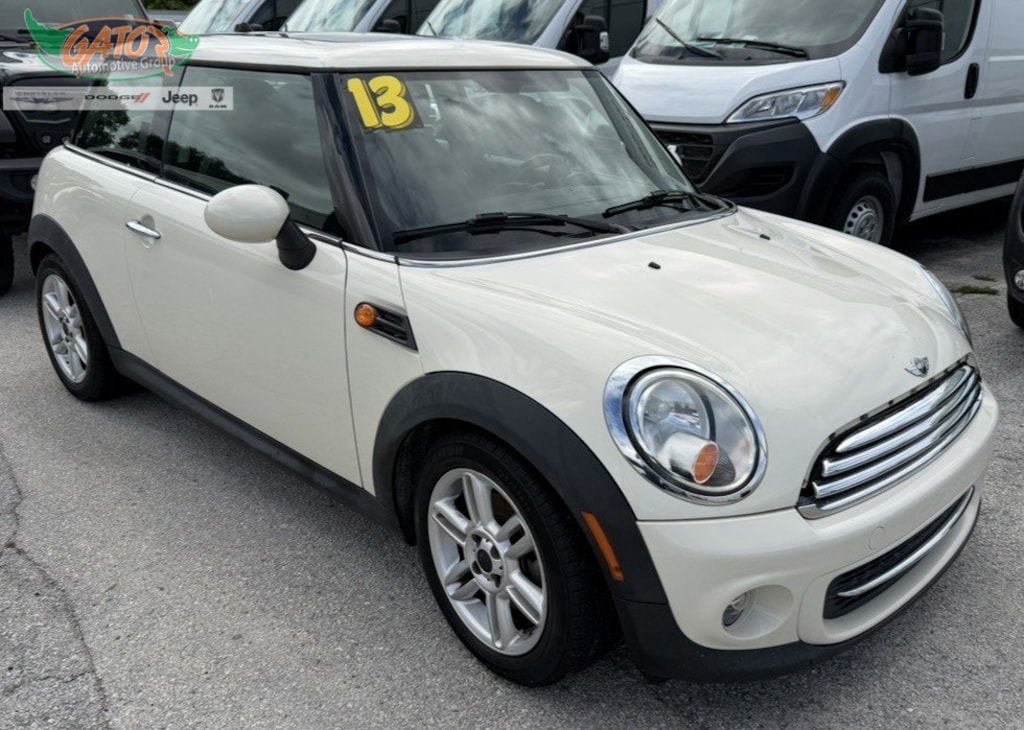 Look at this 2013 MINI Cooper Hardtop 2DR CPE. Its transmission and Gas I4 1.6L/98 engine will keep you going. This MINI Cooper Hardtop has the following options: Ventilated front & solid rear disc brakes, Twin horns, Traction control w/Automatic Stability Control (ASC), Toggle switch instrument controls, Tire pressure monitor, Sport button -inc: accelerator & steering programs, Speed-sensitive variable pwr electric steering, Speed-sensitive front intermittent wipers, Space saver spare tire, and Single pipe exhaust system w/chrome tailpipe.