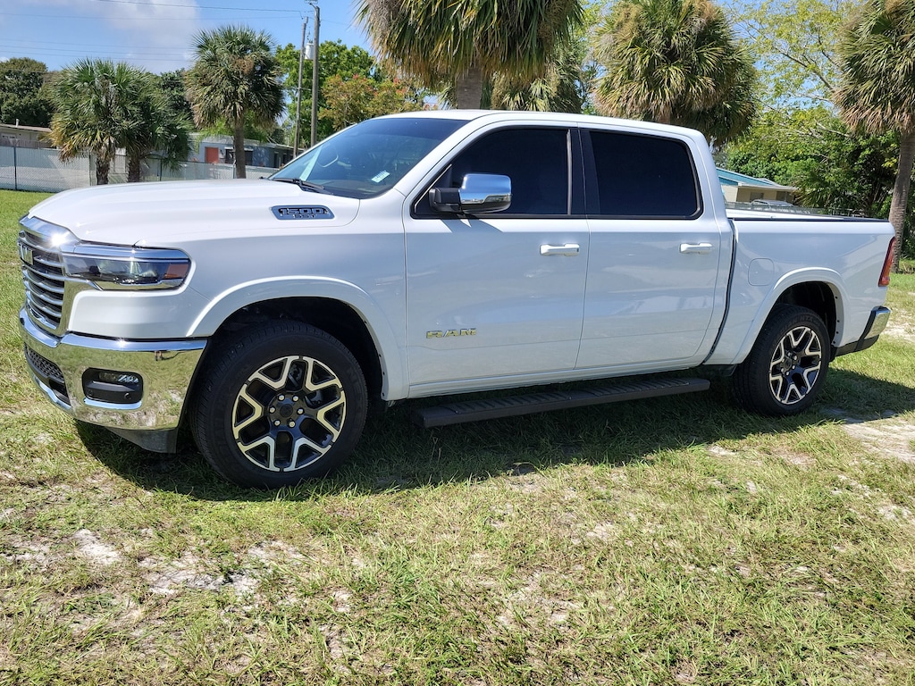 Check out this 2025 Ram 1500 Laramie. Its Automatic transmission and Twin Turbo Regular Unleaded I-6 3.0 L/183 engine will keep you going. This Ram 1500 has the following options: WHEELS: 20" X 9" PREMIUM PAINT/POLISH (STD), TRANSMISSION: 8-SPEED AUTOMATIC (8HP75) (STD), TIRES: 275/55R20 ALL SEASON LRR (STD), SEA SALT/BISON BROWN, LEATHER TRIMMED BUCKET SEATS -inc: Bucket Seats, Rear 60/40 Folding Split Recline Seat, #1 Seat Foam Cushion, Center Console Parts Module, Heated Second Row Seats, Power Adjust 8-Way Driver Seat, Full Length Upgraded Floor Console, RADIO: UCONNECT 5 NAV W/14.4" DISPLAY, QUICK ORDER PACKAGE 21H LARAMIE -inc: Engine: 3.0L I6 Hurricane SO Twin Turbo ESS, Transmission: 8-Speed Automatic (8HP75), ENGINE: 3.0L I6 HURRICANE SO TWIN TURBO ESS (STD), BRIGHT WHITE CLEARCOAT, ANTI-SPIN DIFFERENTIAL REAR AXLE, and 33 GALLON FUEL TANK.