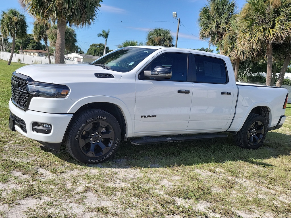 Look at this 2025 Ram 1500 Big Horn. Its Automatic transmission and Twin Turbo Regular Unleaded I-6 3.0 L/183 engine will keep you going. This Ram 1500 has the following options: TRANSMISSION: 8-SPEED AUTOMATIC (8HP75), TIRES: 275/55R20 OWL ALL SEASON -inc: Bridgestone Brand Tires, RADIO: UCONNECT 5 NAV W/12.0" DISPLAY, MANUFACTURER'S STATEMENT OF ORIGIN, FRONT LICENSE PLATE BRACKET, BRIGHT WHITE CLEARCOAT, BLACK, DELUXE CLOTH BUCKET SEATS -inc: Bucket Seats, Full Length Floor Console, Power Adjust 8-Way Driver Seat, Power 2-Way Driver Lumbar Adjust, ANTI-SPIN DIFFERENTIAL REAR AXLE, 9 AMPLIFIED SPEAKERS W/SUBWOOFER, and 33 GALLON FUEL TANK.